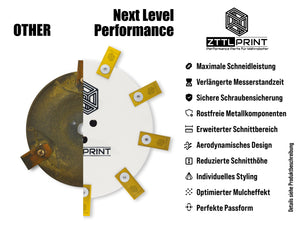 In addition, grass clippings can adhere to the blade disc when mowing damp grass. This additional weight corresponds approximately to the difference in weight of our blade discs and also occurs with original parts .